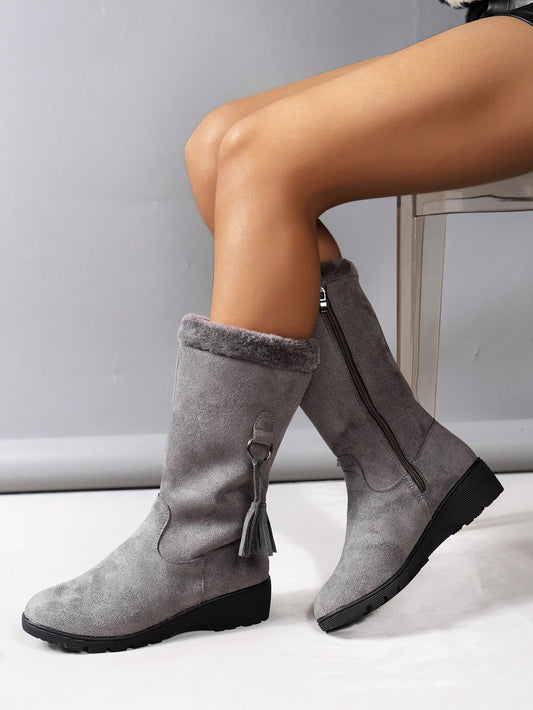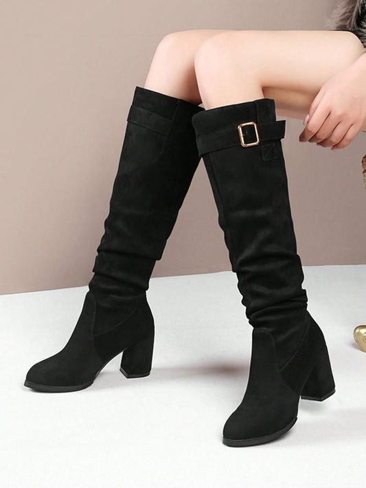 بوت طويلة حتى الركبة ذات كعب متوسط