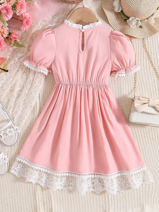 فستان شبكي شامل اكمام منتفخة مزين بنت طفل