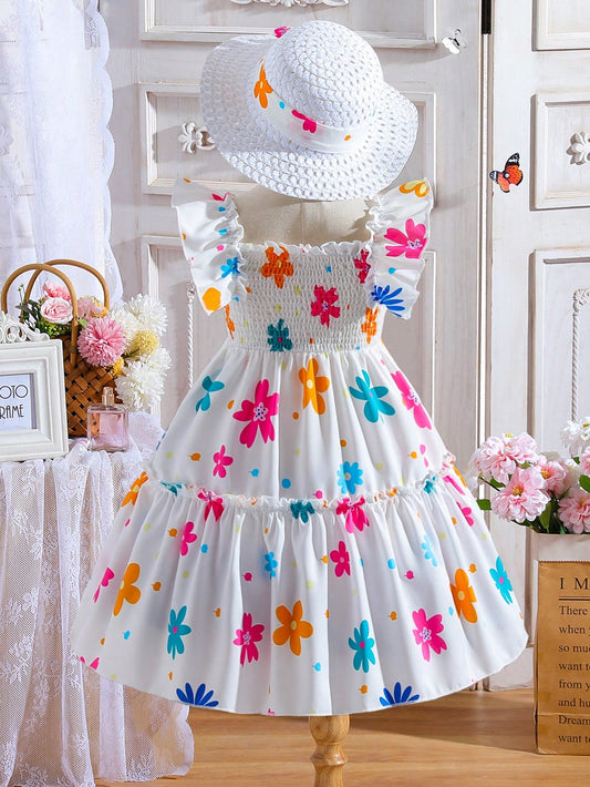 فستان بطباعة زهر شامل للبنات الصغار