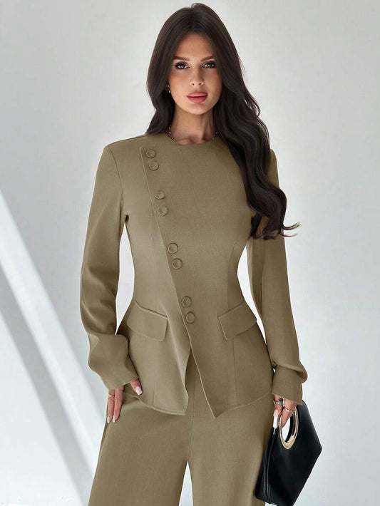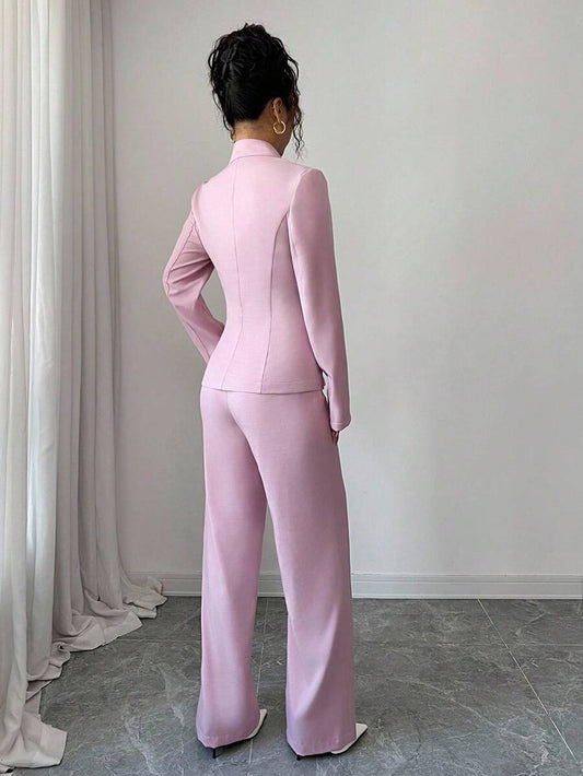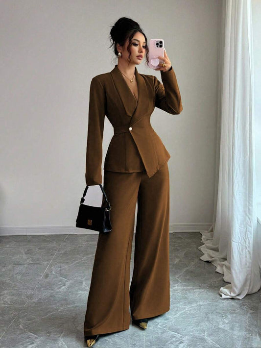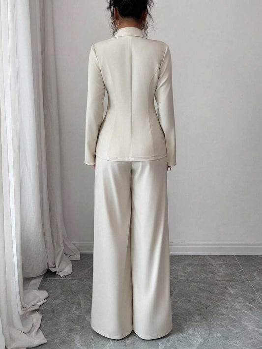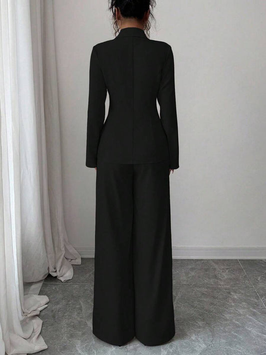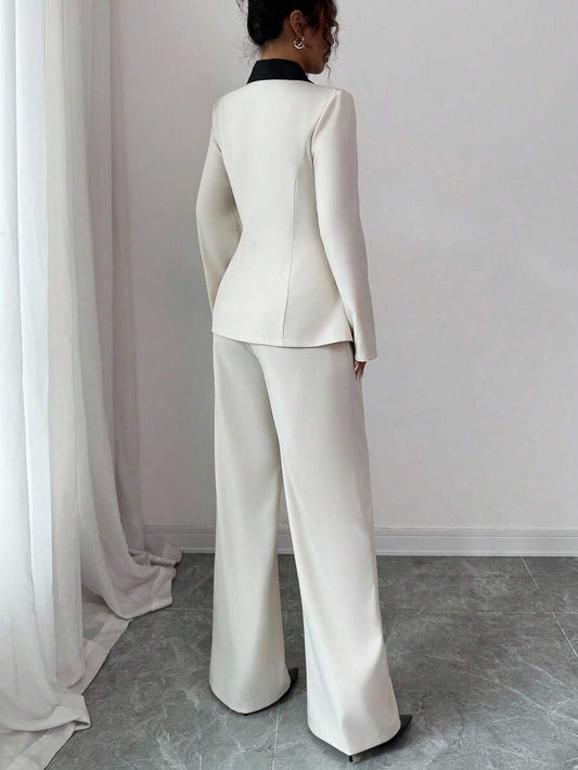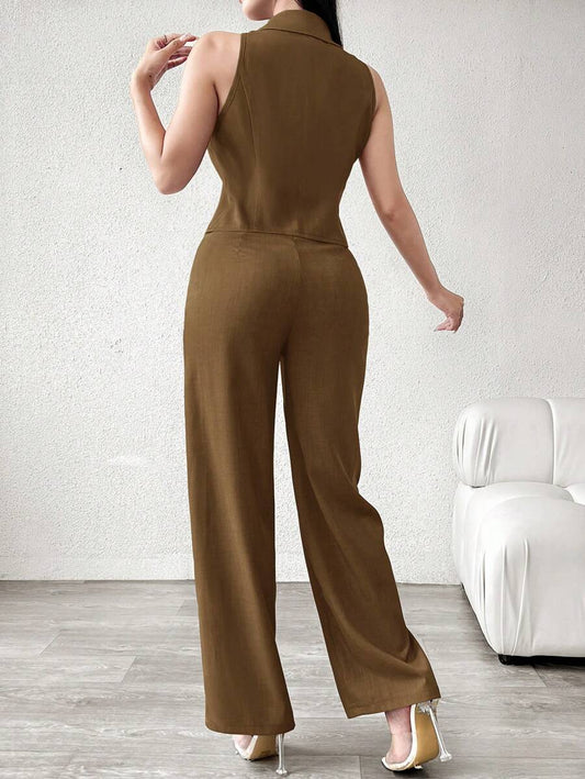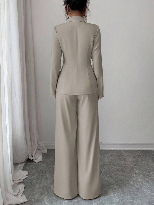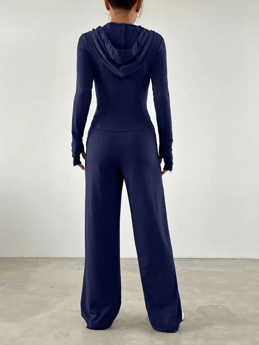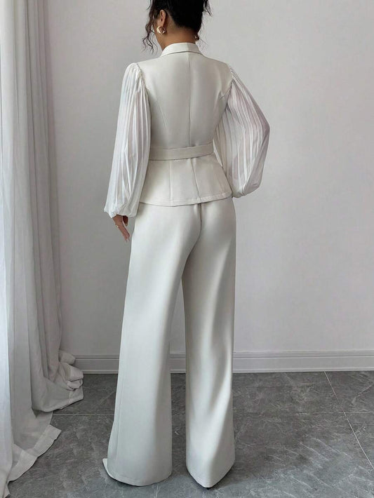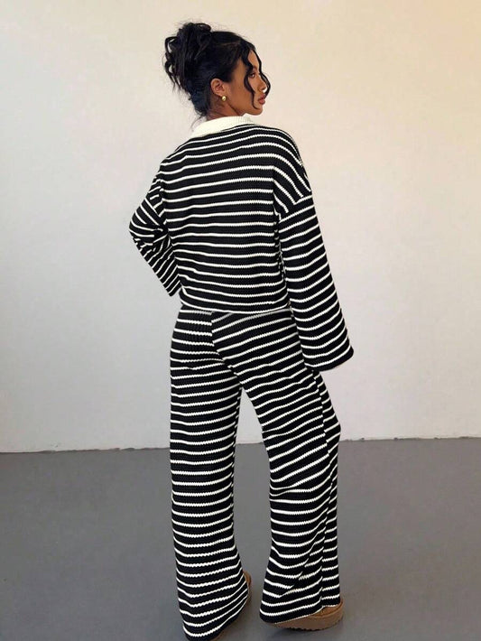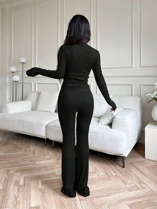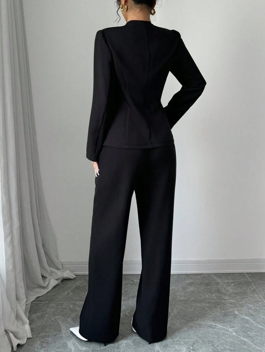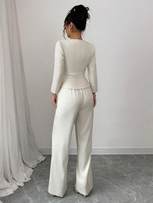 موحدة اللون لباس علوي قصير & بنطلون بساق واسع