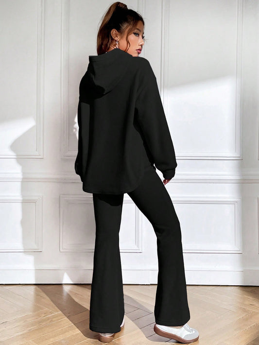 هوديي مرقع بأكتاف منسدلة وسروال ساق واسع