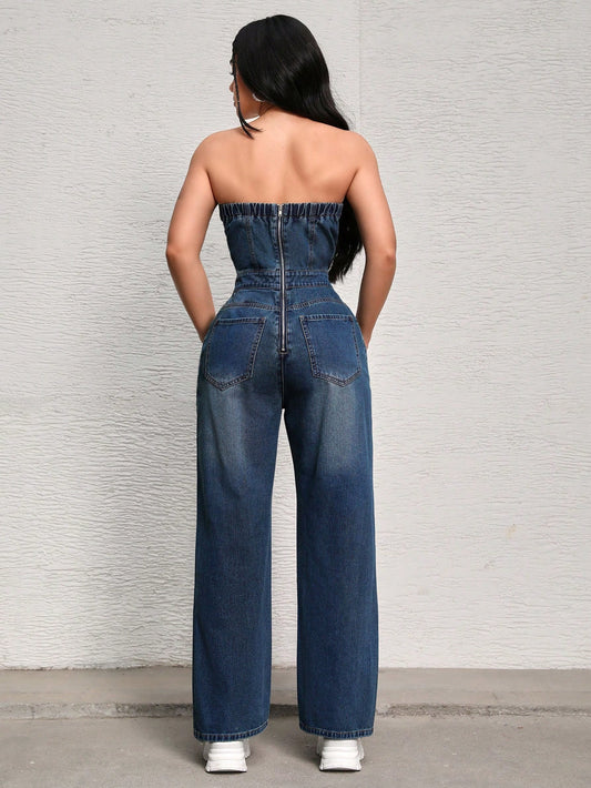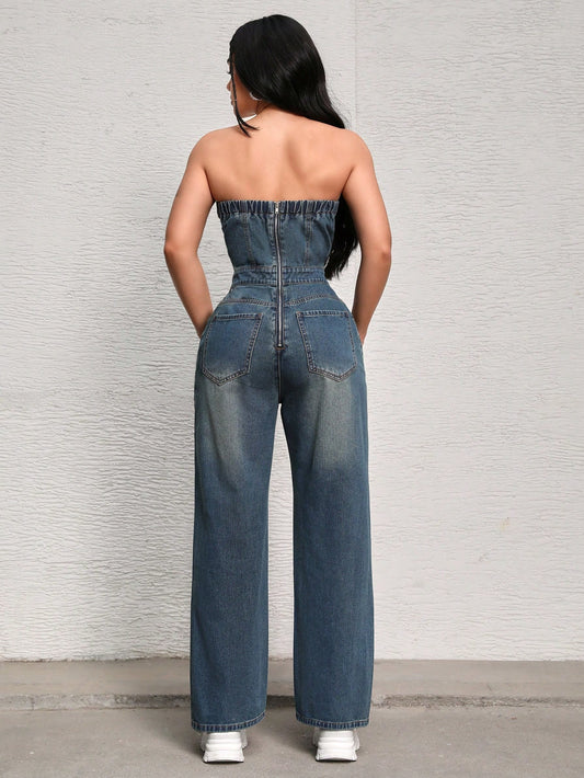 بدلة جينز ضيقة مع حمالات وتفاصيل مفرغة74,000د.ع44,400د.ع
