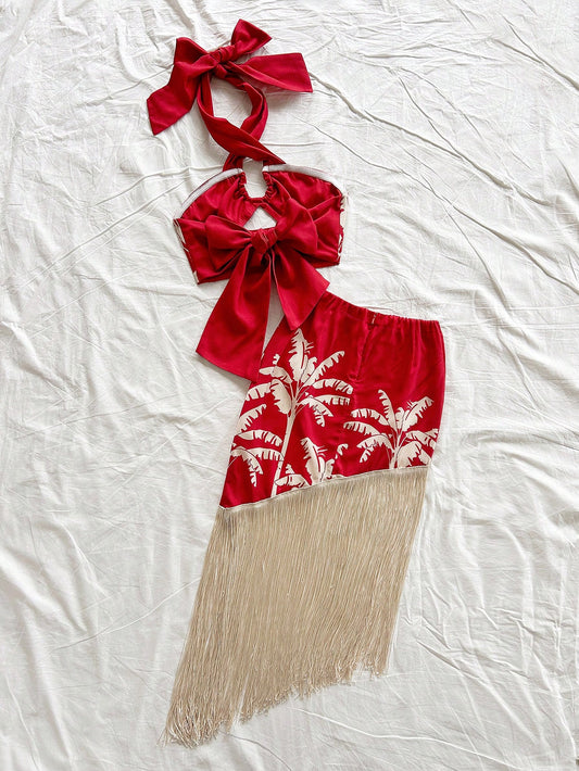 طقم مناسق مطبوع محبوك بدون أكمام للنساء63,000د.ع37,800د.ع