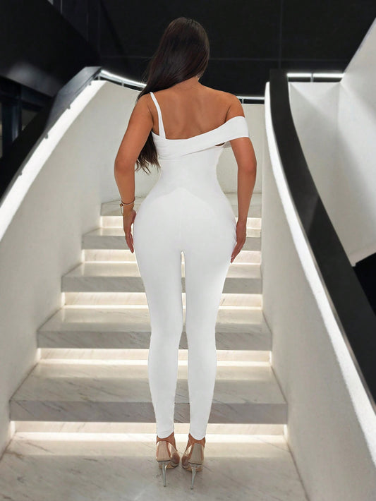 بدلة حريرية أنيقة ذات فتحة كتف واحدة