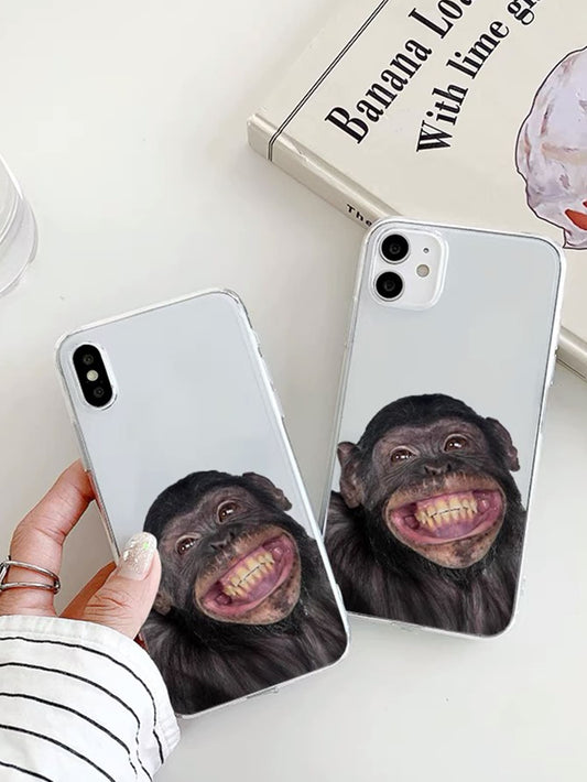 غطاء حماية هاتف شفاف نمط شمبانزي