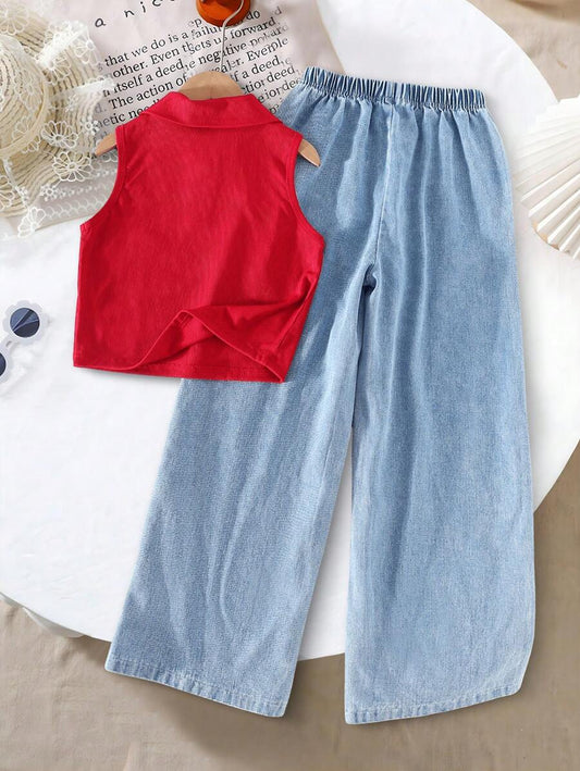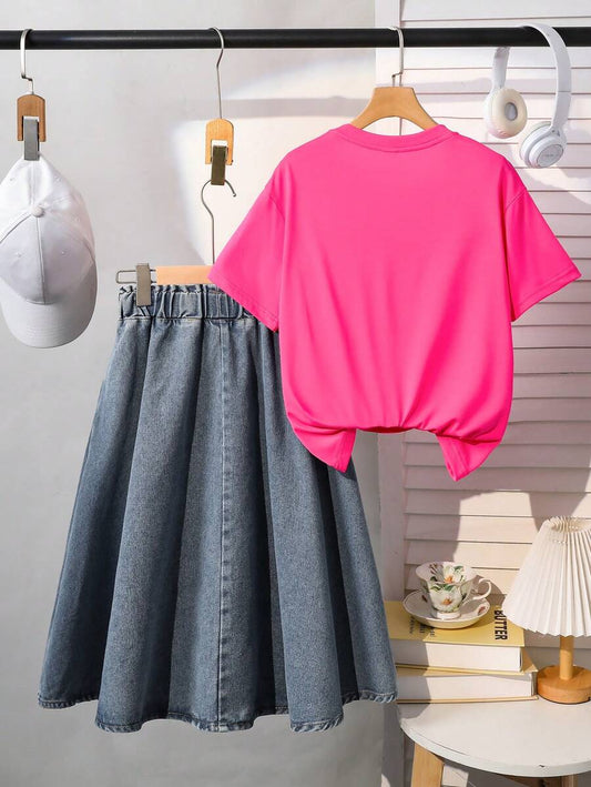 مجموعة جاكيت جينز وتنورة طفل رضيع قطعتين