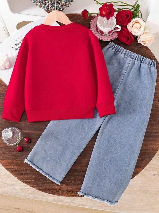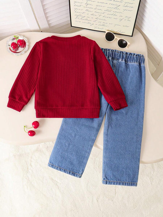 ثنية فتاة مجموعة قميص وتنورة مزينة بحواف دانتيل أنيق