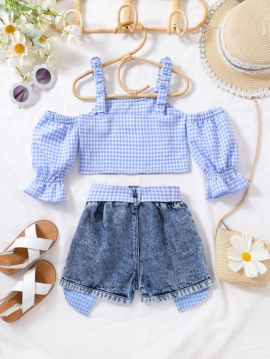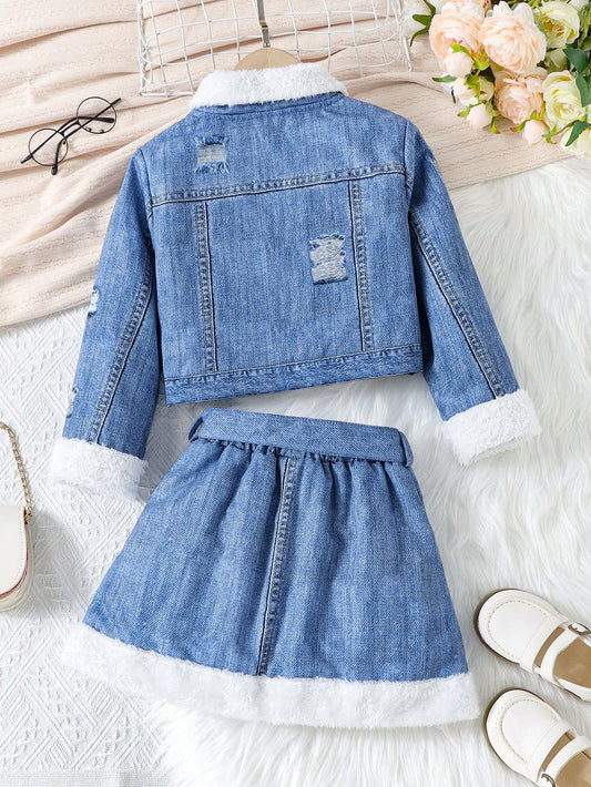 مجموعة جاكيت جينز وتنورة طفل رضيع قطعتين