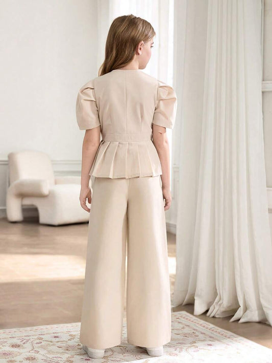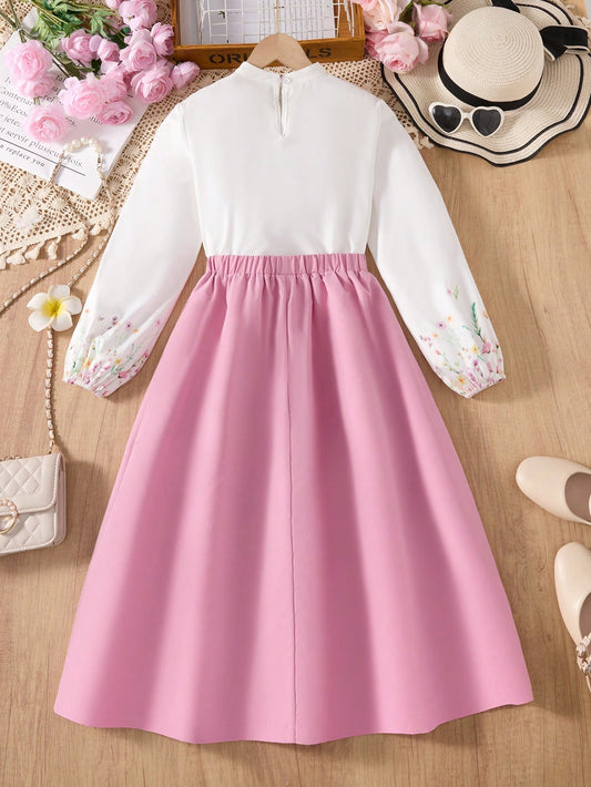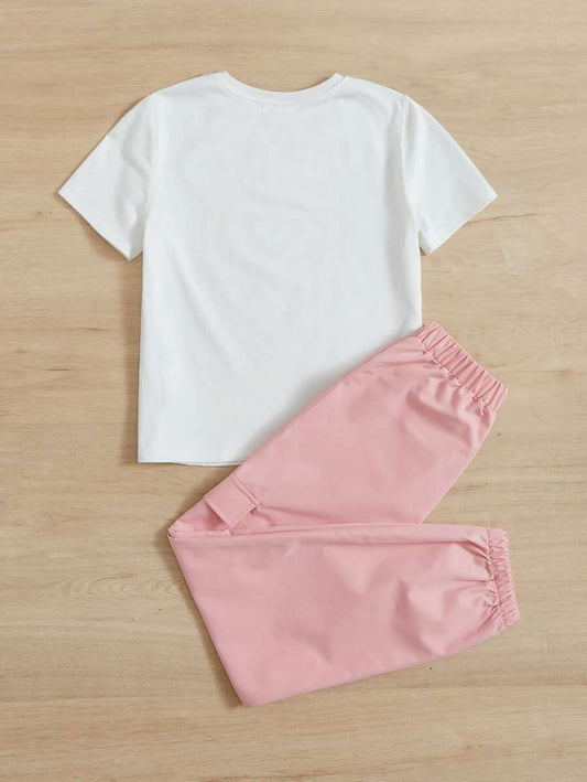 تي شيرت صبية متوسطة برسوم فراشة وحرف وبنطلون