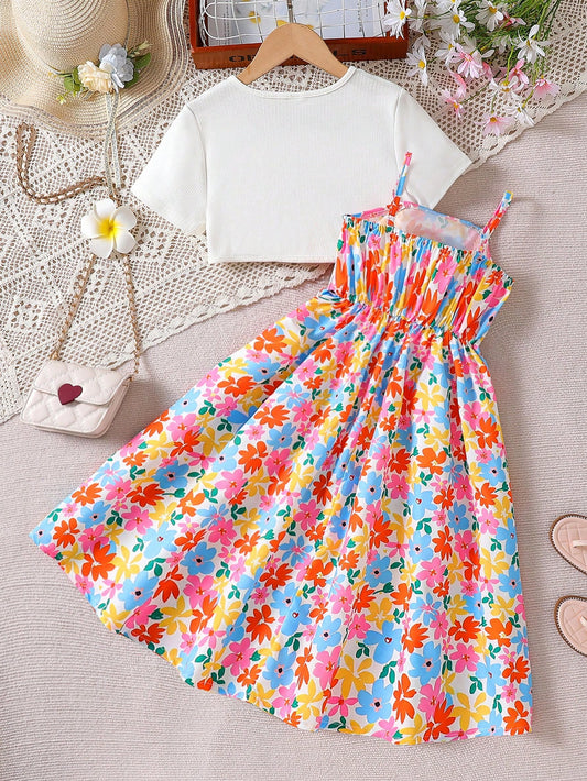 طقم ملابس علوية كاجوال بلا أكمام وفستان