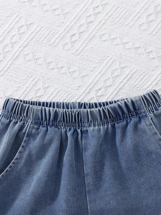 طقم قطعتين للفتيات المراهقات بسترة عادية جينز وقميص خزان