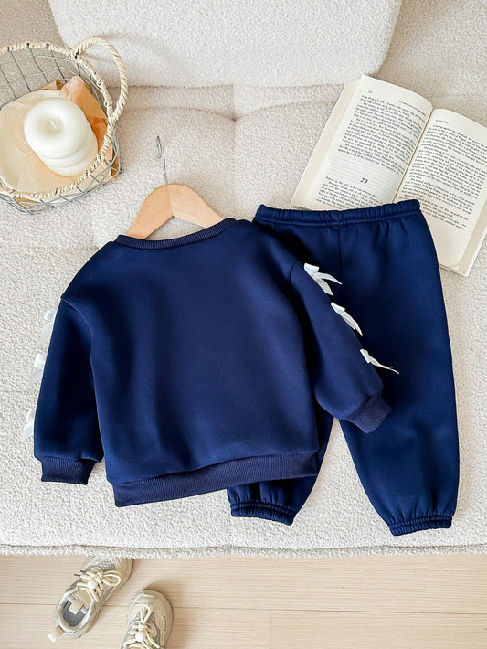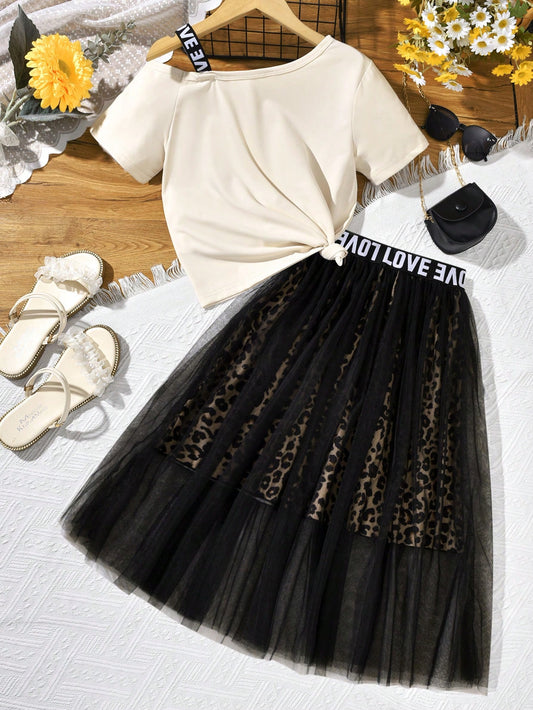 تي شيرت صبية متوسطة برسوم فراشة وحرف وبنطلون