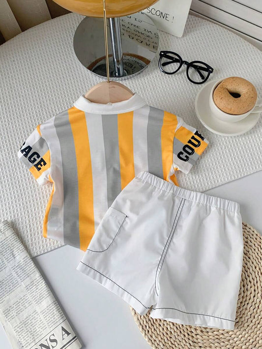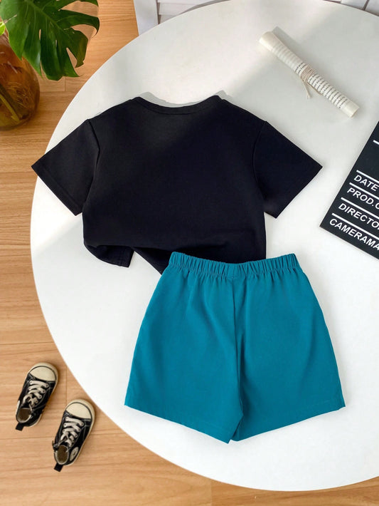 مجموعة تي شيرت وشورت للأولاد الرضع بطبعة دب كرتوني