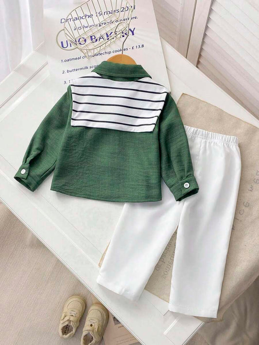 طقم بنطلون كاجوال وقميص طويل الأكمام