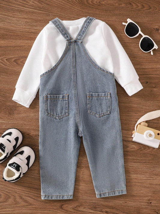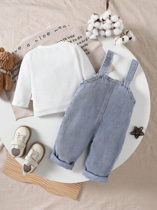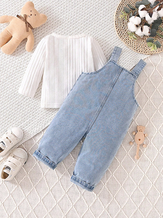 مجموعة كنزة صبيانية الذراعين وتنورة جينز للأطفال الرضع
