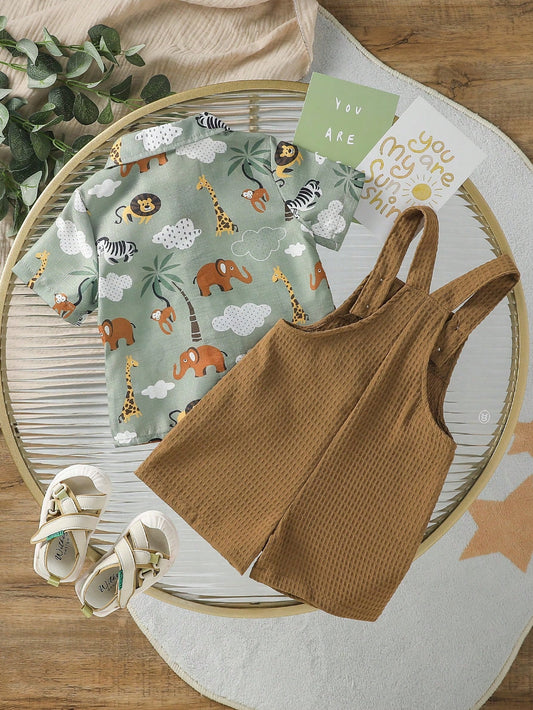 طقم ملابس علوية أساسي بأكمام طويلة وبناطيل ساق للرضع ذكور