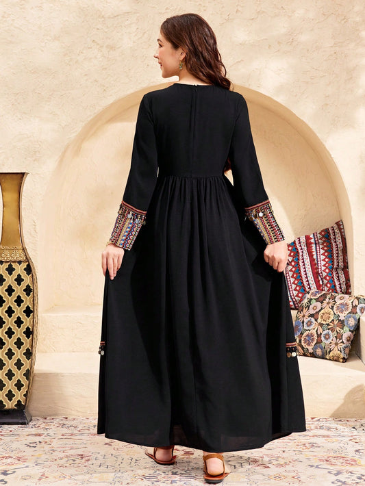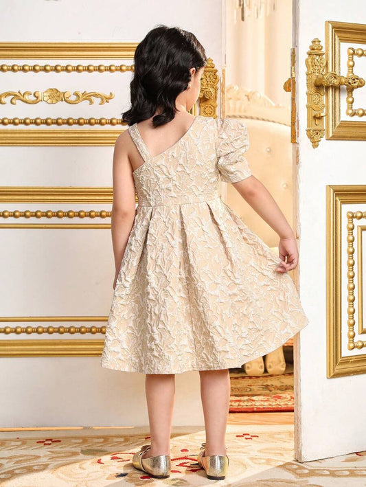 فستان مخمل ذو خصر مطاطي مع أكمام مطاطية