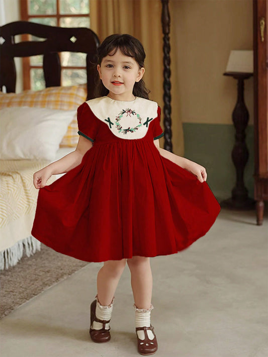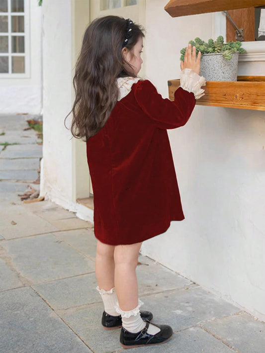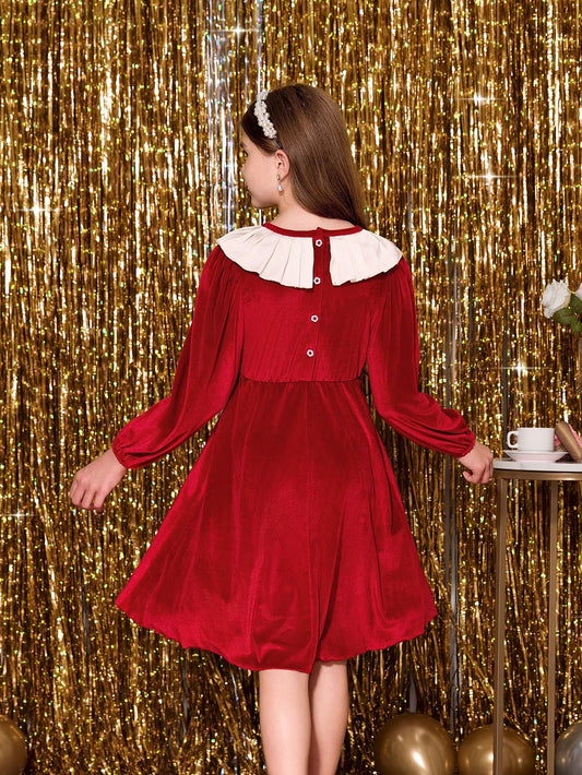 فستان مخمل ذو خصر مطاطي مع أكمام مطاطية