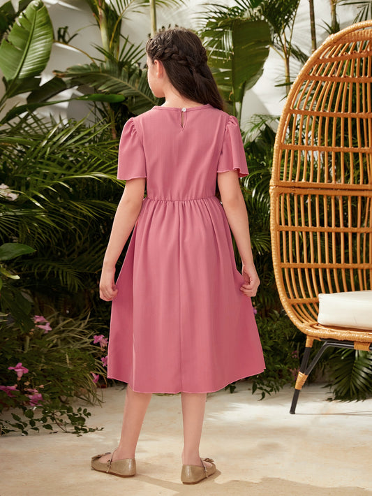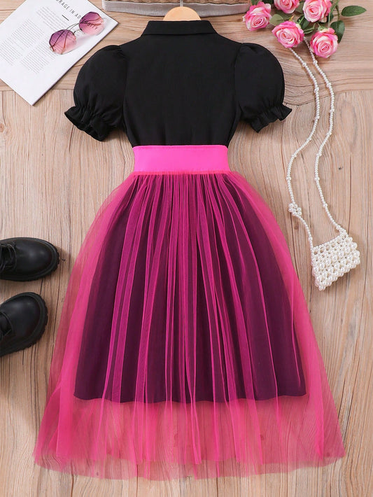 فستان طفلة بأكمام منتفخة وياقة حبيبة