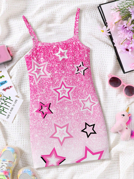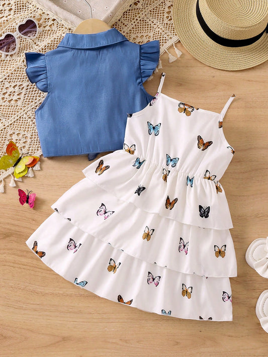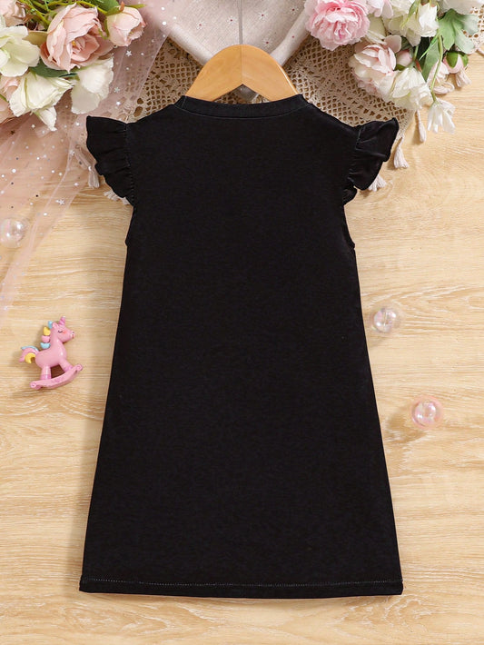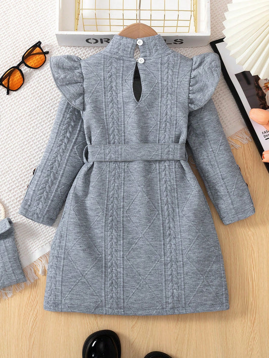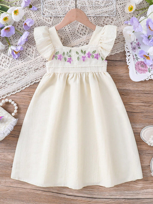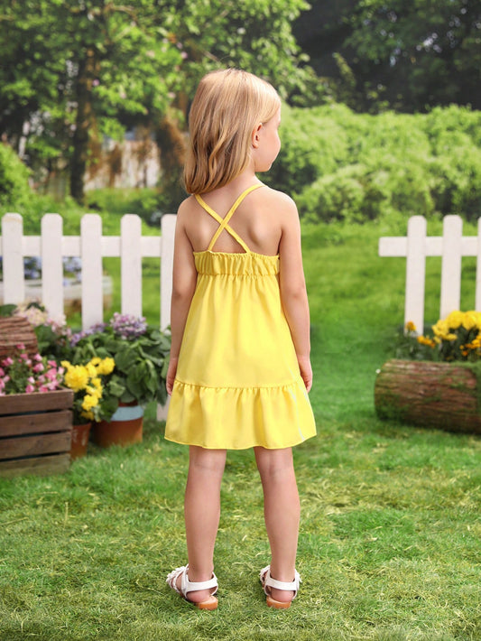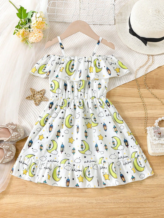 فستان كامي مزين حافة مكشكشة للبنات الصغار