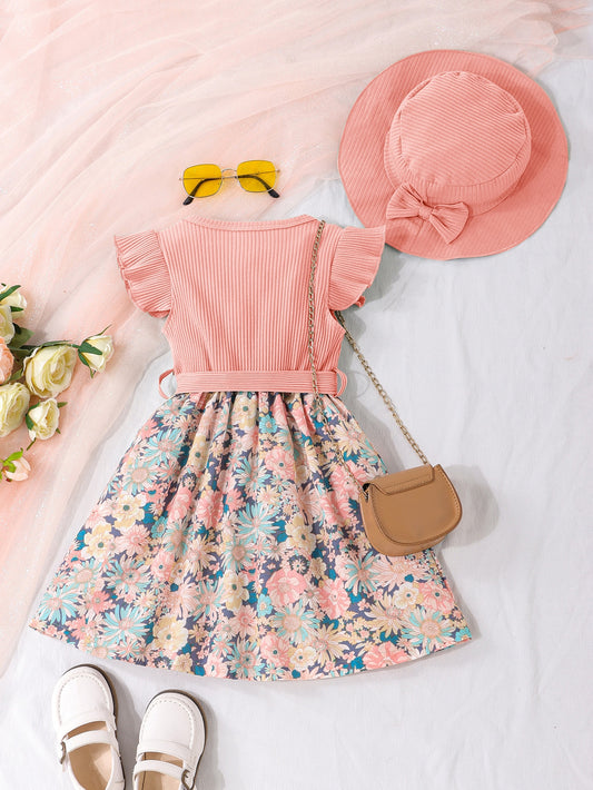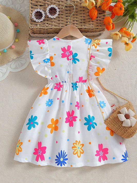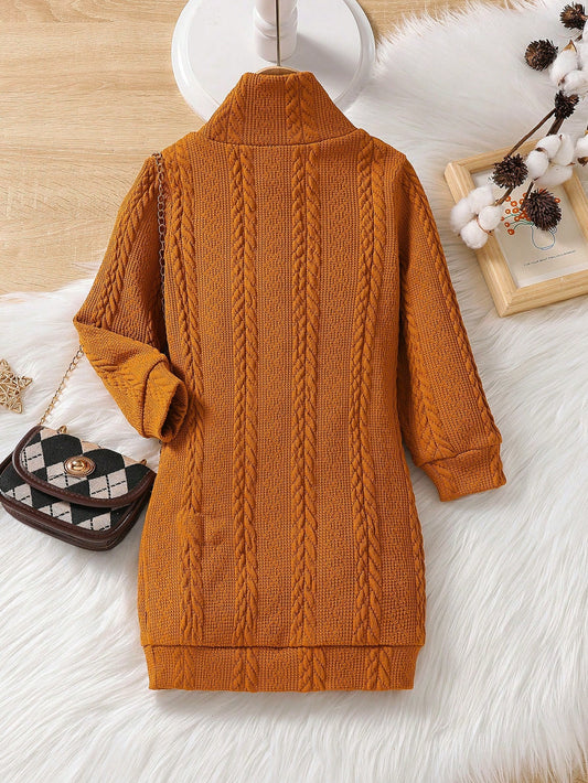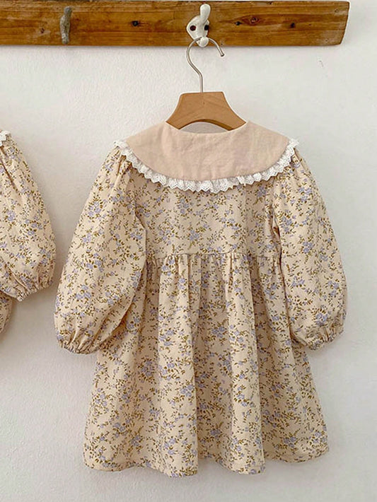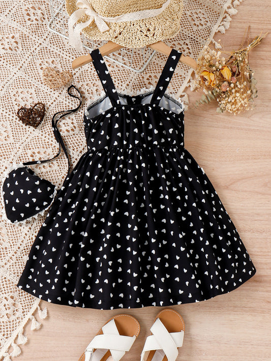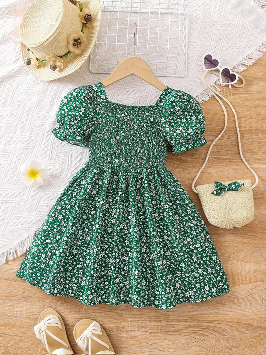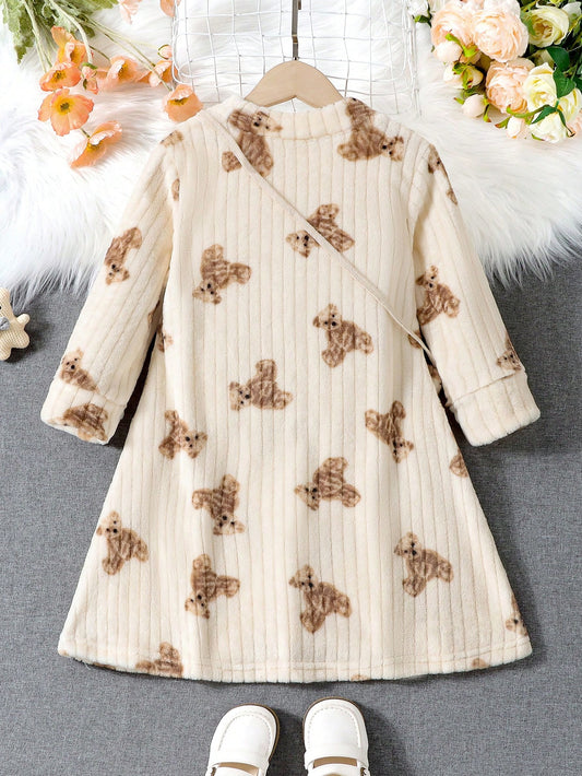 فستان طباعة بالدب وقوف الياقة مع حقيبة بنت طفل