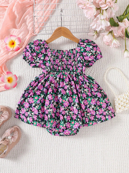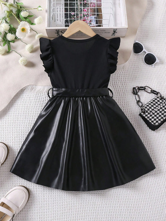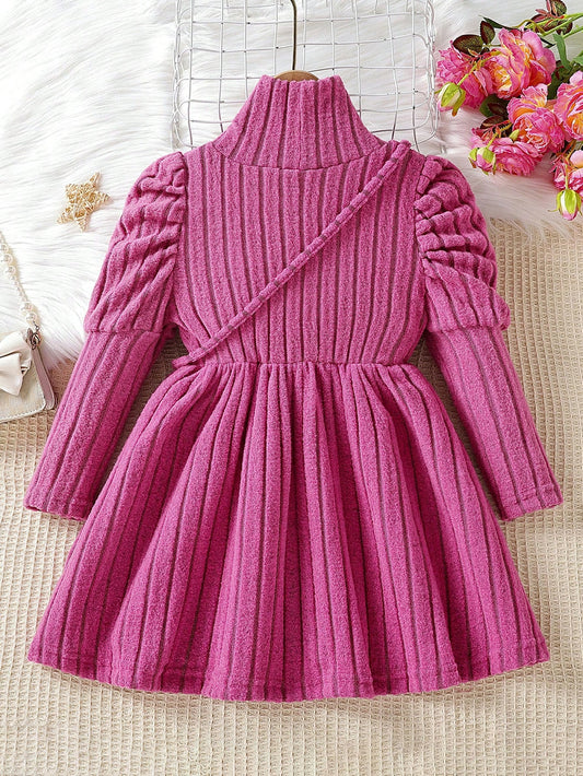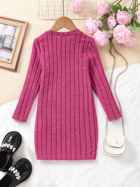 فستان طفلة رضيعة بأكمام طويلة مضلعة عصري