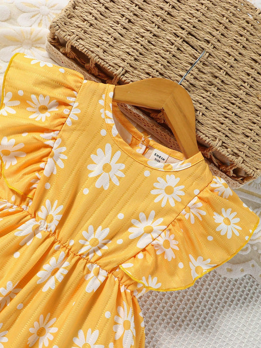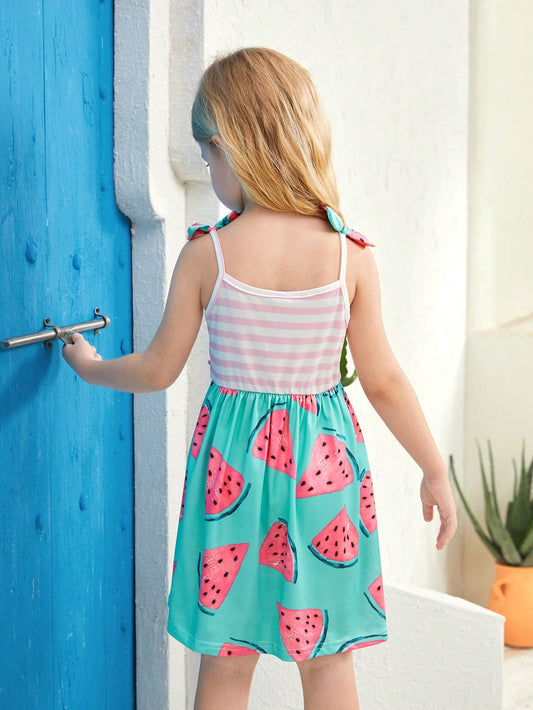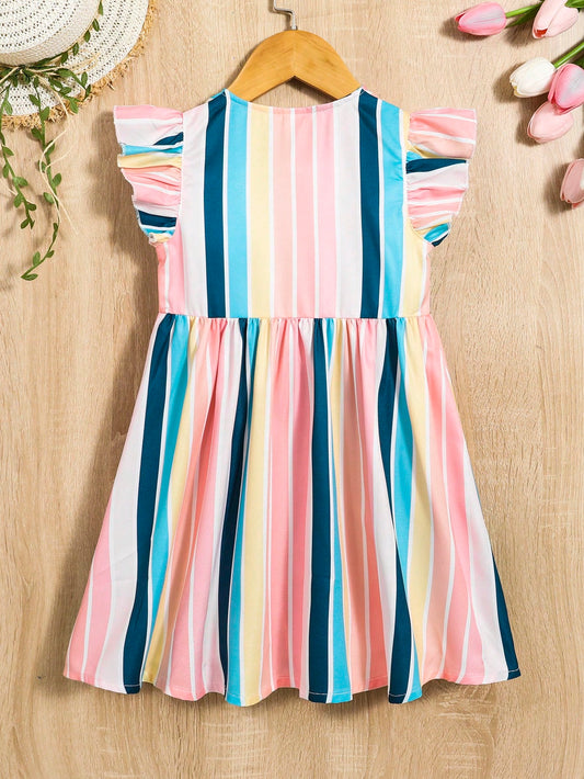 فستان طباعة مخطط مقلم بكشكش أزرار أمامية