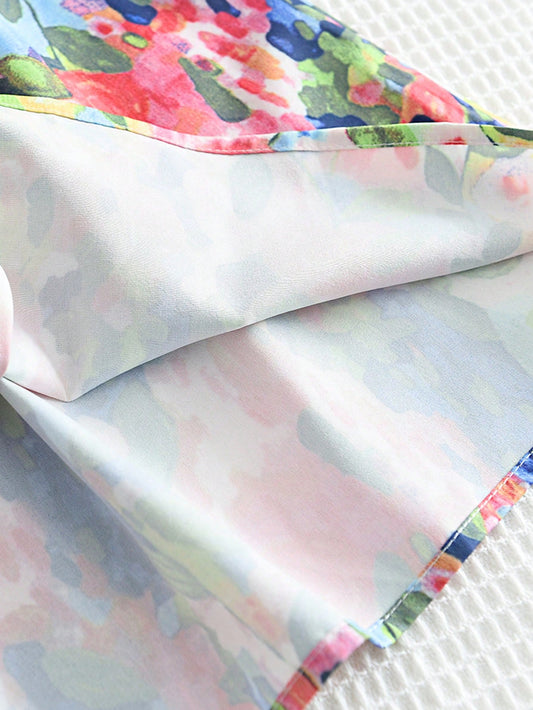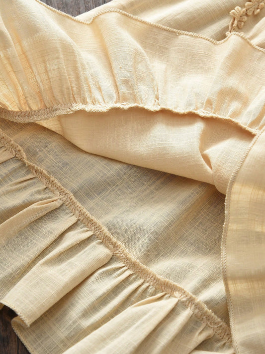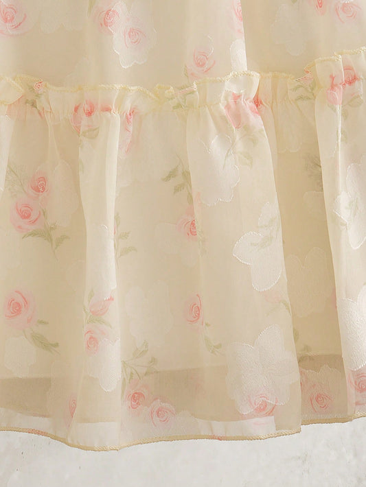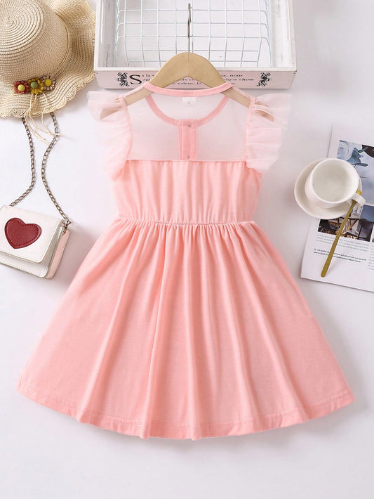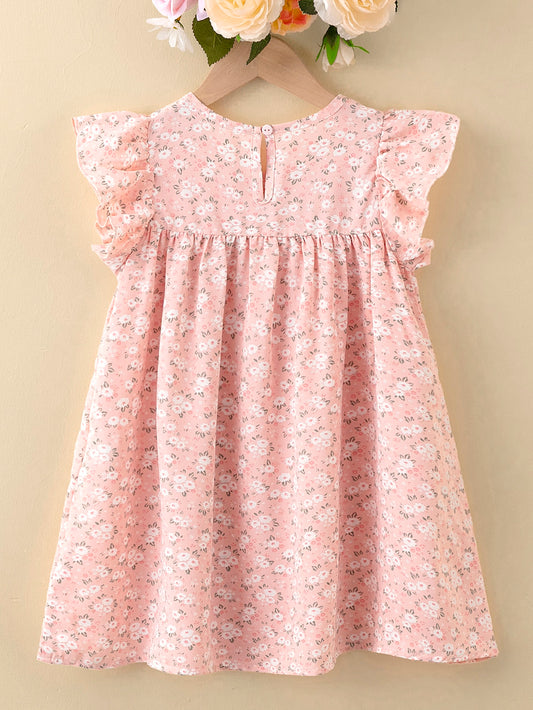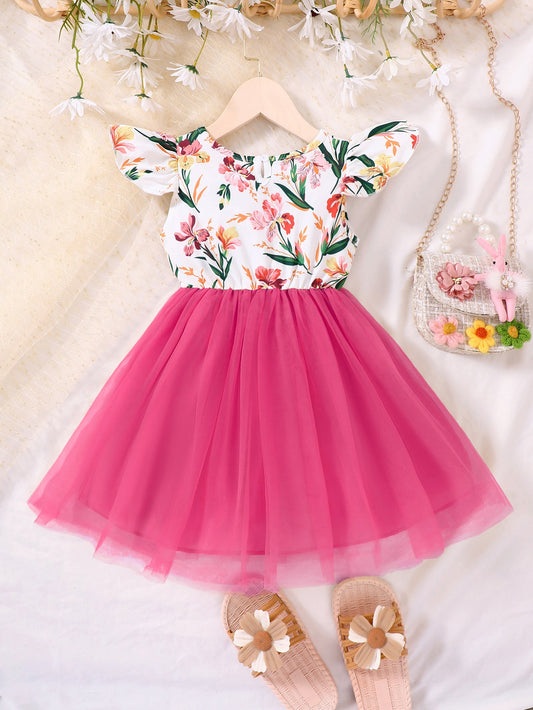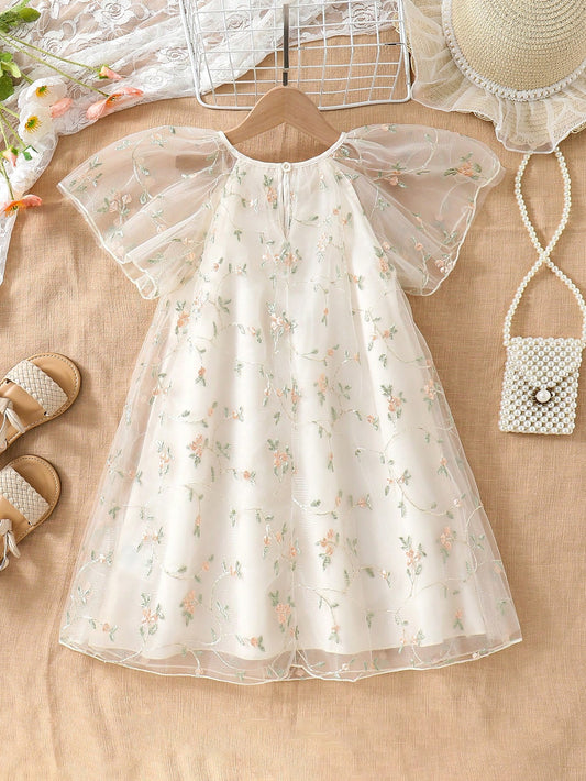 فستان شبكي بحافة مطرزة بفراشة للفتاة الصغيرة مع أزهار