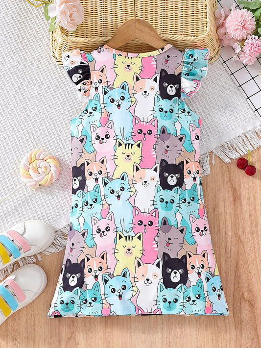 فستان حفلة أنيق للفتاة الصغيرة، برقبة دائرية وبدون أكمام