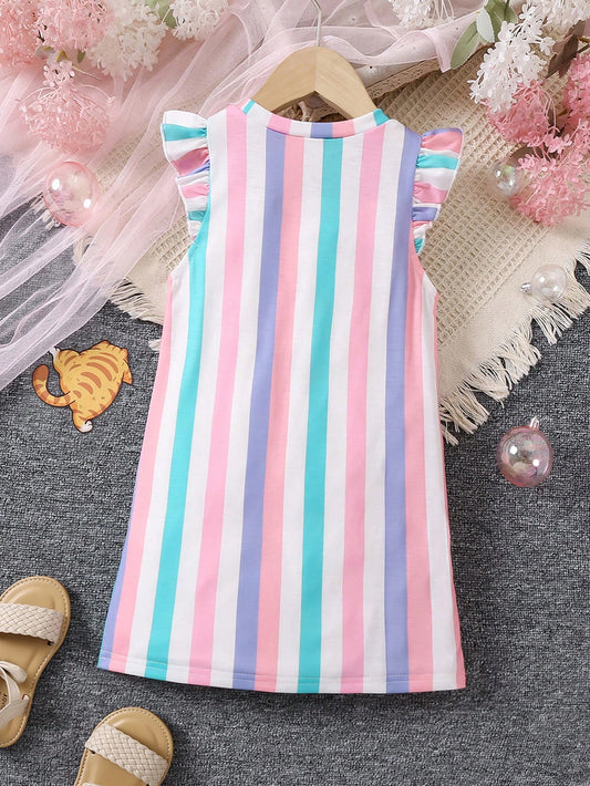 فستان صوف مقلم متباين أزرار أمامية بنت طفل