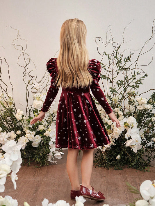 فستان سهرة بنقشة نجمة من الفيلكس الأحمر للفتيات