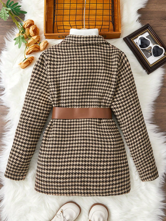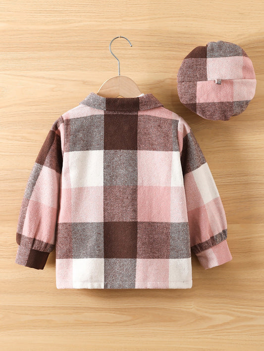 جاكيت تيدي نمط رقعة الشطرنج منخفض الاكتاف بنت طفل