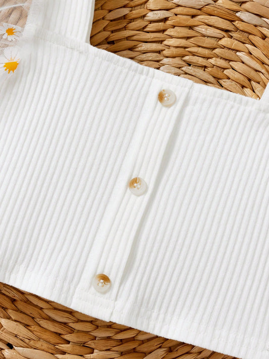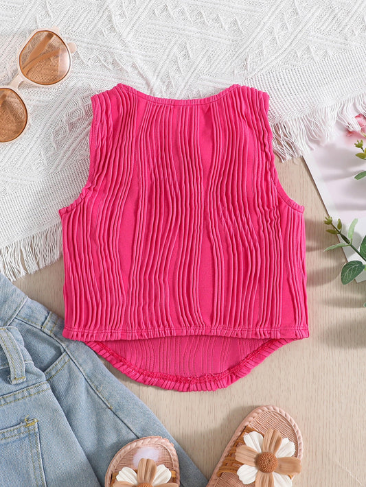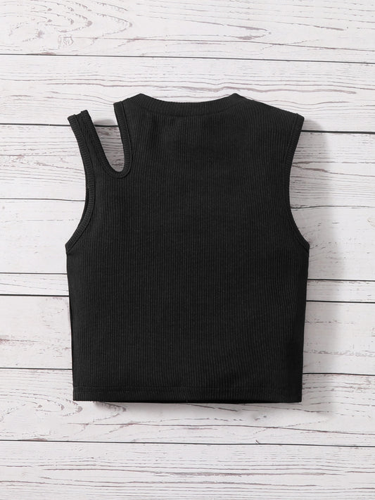لباس علوي تانك محبوك مضلع قص مجوف بنت طفل