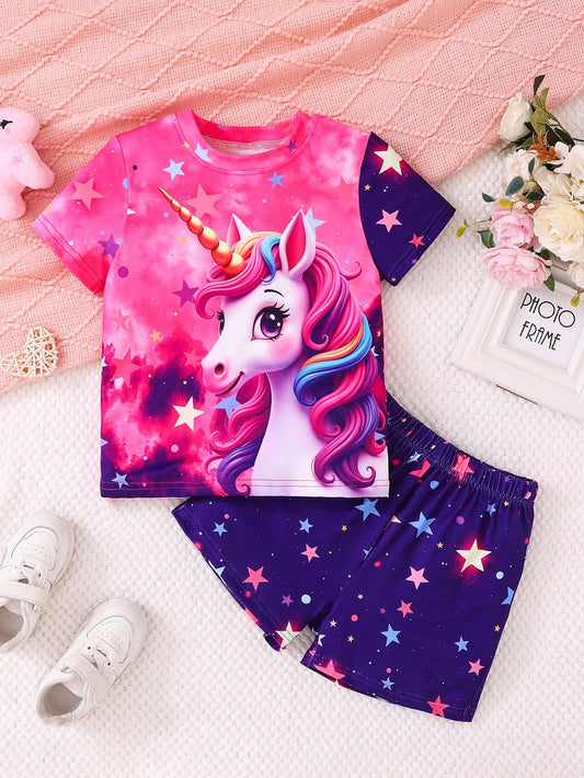 بدلة بنطلون و تي شيرت وردي مطبوع عليه أرنب