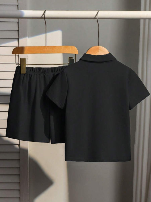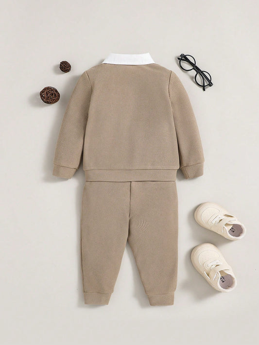 قميص ثقيل مع بنطلون رياضي ياقة متباينة