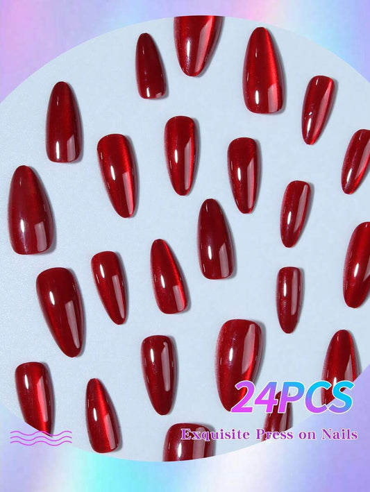 أظافر صناعية أنيقة عميقة الحمراء للنساء