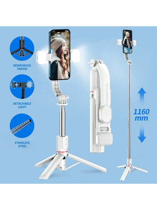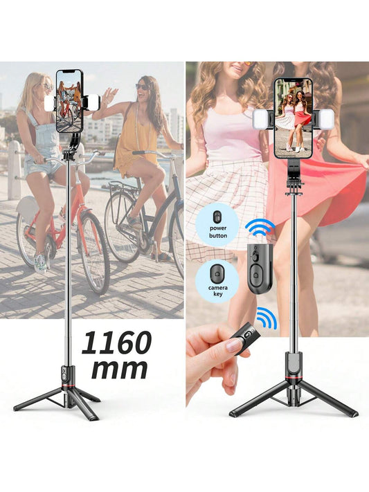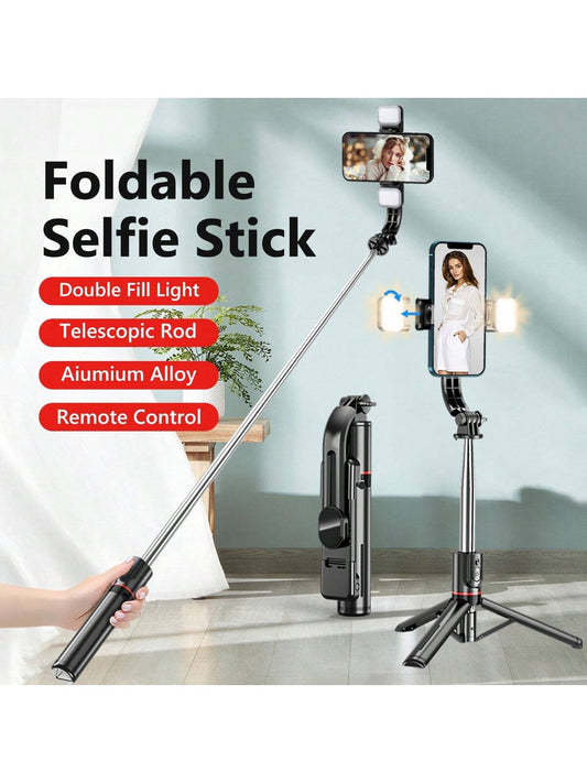 عصا تصوير سلفي مع حامل يثبت على الطاولة ويوفر إضاءة