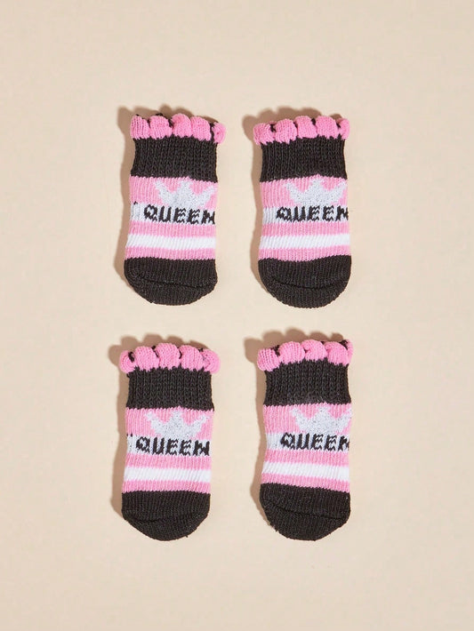 4أزواج جوارب زهرية مخططة بنمط التاج