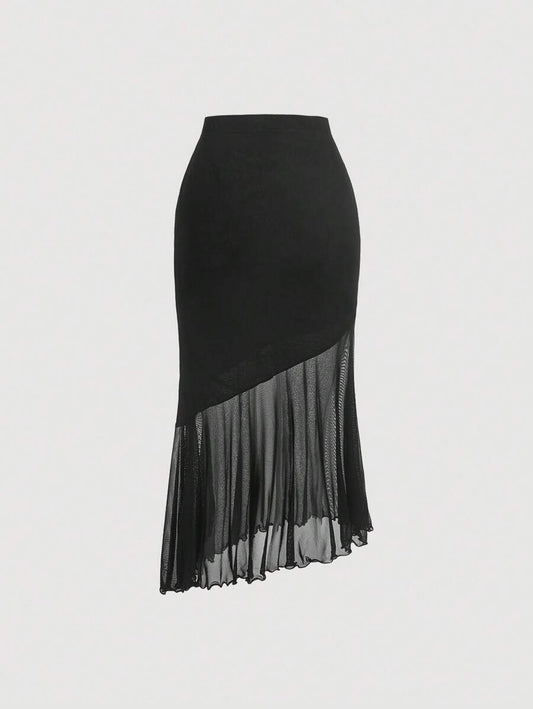تنورة خصر عالي ثنية فتحة للفخذ حافة مجمع