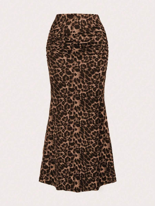 تنورة ذو تجاعيد موحدة اللون خصر عالي