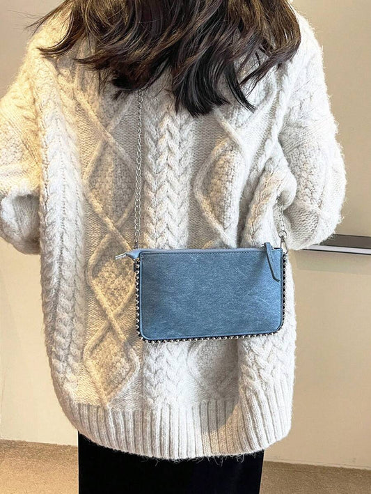 حقيبة مكياج مربعة صغيرة مع سحاب بسلسلة