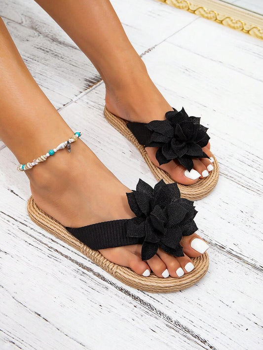 صندل نسائي مسطح، قاع ناعم غير انزلاقي