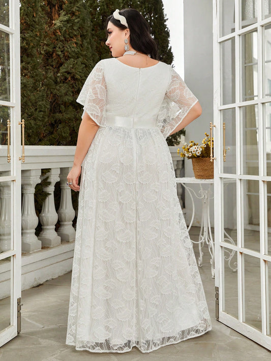 فستان زفاف اكمام فراشة دانتيل مقاس كبير