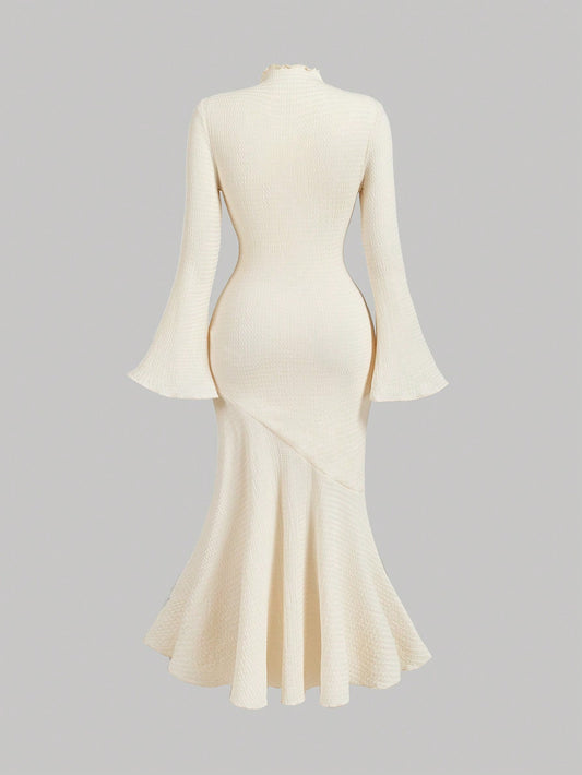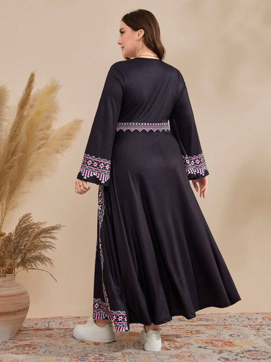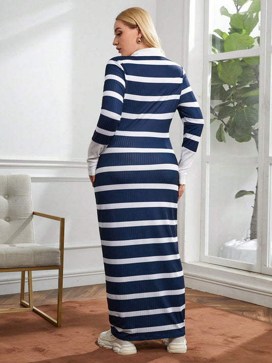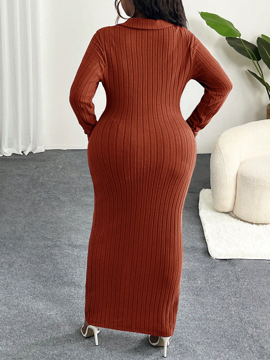 فستان ضيق طباعة نقش مسنن مقاس كبير