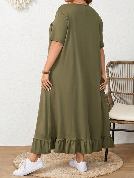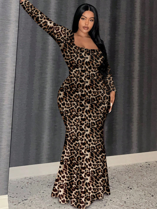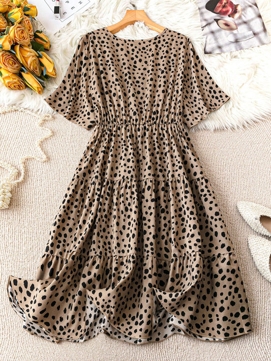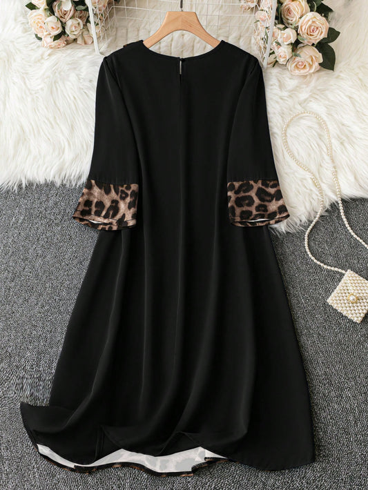 فستان طباعة الفهد بحافة انسيابي مقاس كبير