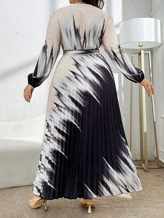 فستان زهور بلس مطبوع متضارب مع دانتيل
