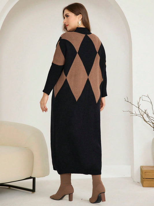 فستان كنزة سيدات قياس كبير ذو لون سادة بياقة