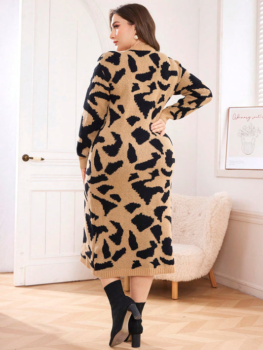 فستان متواضع بأكمام طويلة مع طباعة نمر