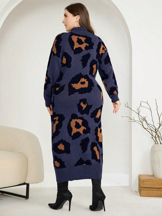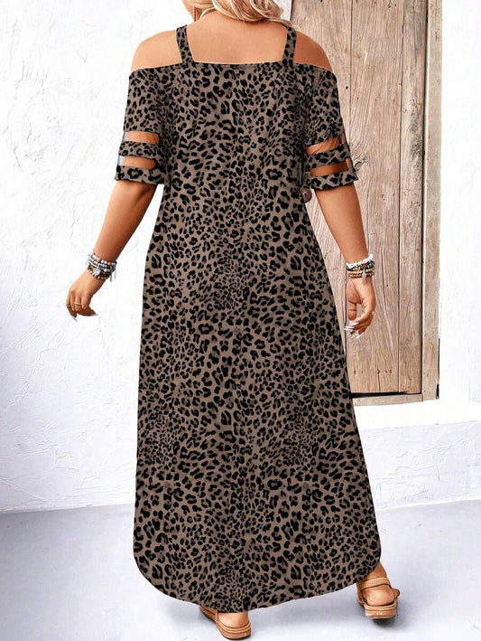 مقاس كبير فستان تي شيرت طباعة الفهد