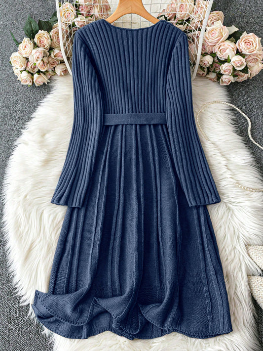 فستان كنزة قطعة واحدة بأكمام طويلة